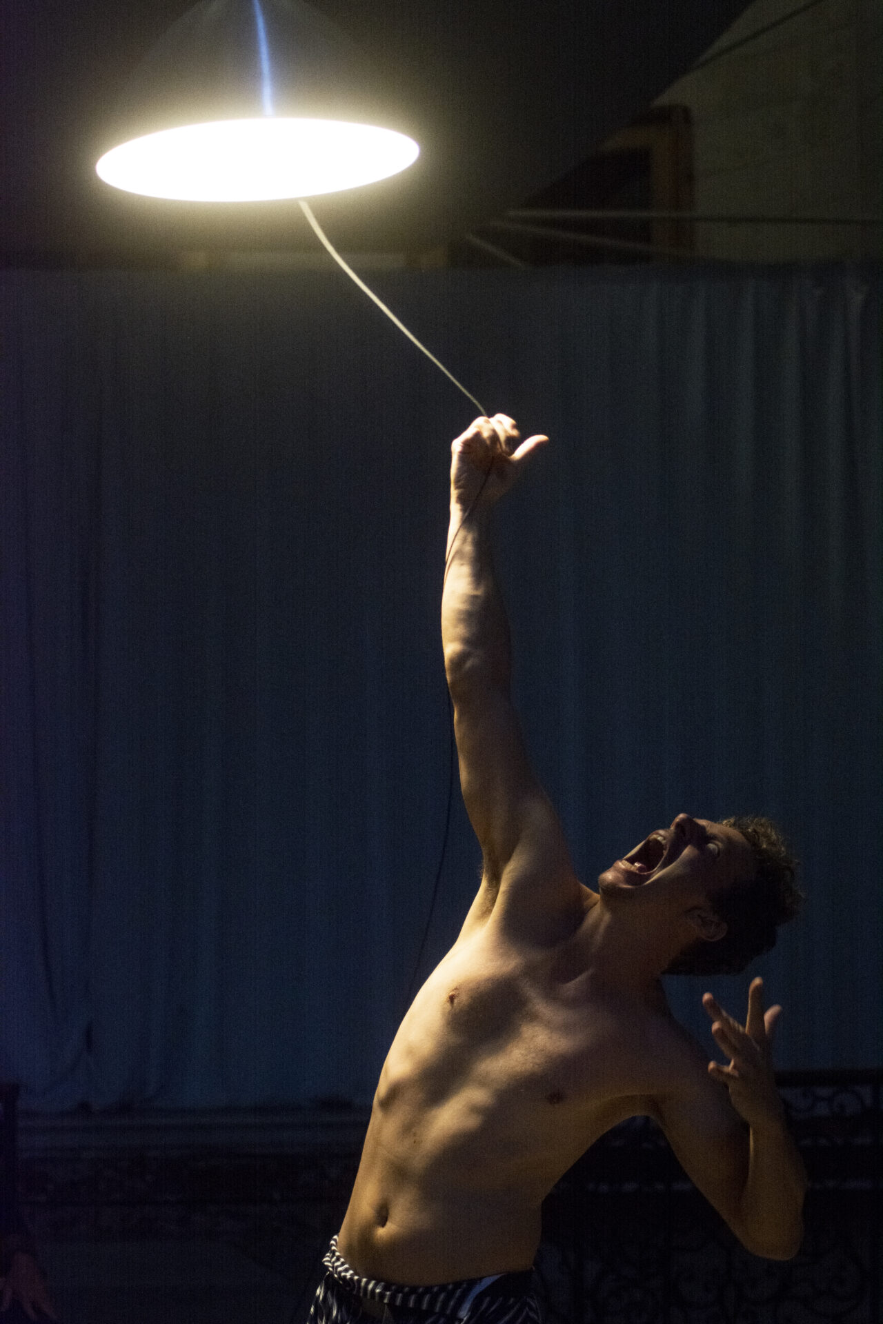 Un travail sur le texte, le son, leurs résonances et la danse : J’ai placé mon corps, mon nombril, au centre du monde. Cela me permet de percevoir ce qui m’entoure sous forme d’expériences sensitives souvent subjectives. Je les traverse et suis traversé par celles-ci.